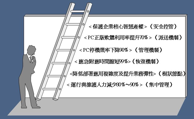 ◆有個人電腦的完整效能卻擁有集中化的管理能力,使個人電腦變成大系統架構。